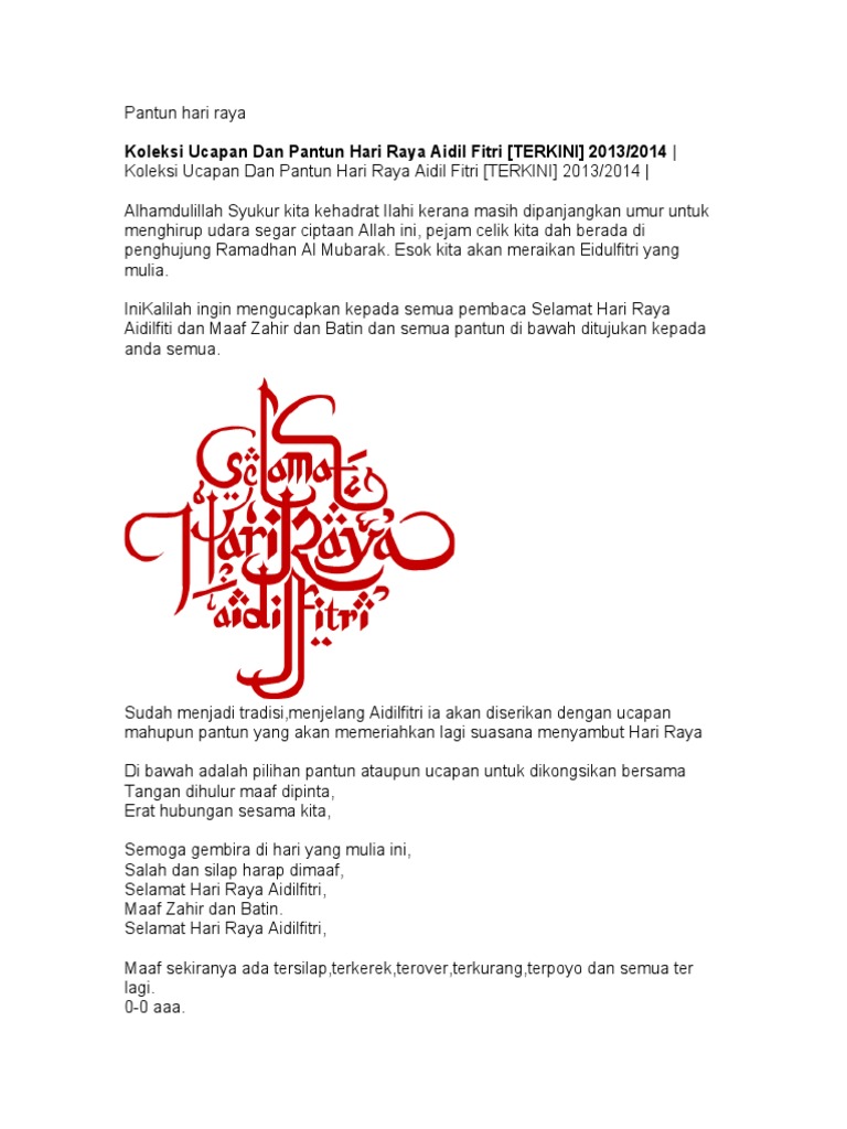 Pantun Raya 2 Kerat : Ada yang menjadikan ucapan raya sebagai caption raya intagram, status wassap raya, posting raya facebook dan sebagainya.. Semoga pantun dan ucapan selamat hari raya ini dapat memberi idea bagi ucapan anda pada hari raya tahun ini. Pantun dua kerat (nasihat) by nur rahim 9633 views. Pantun 2 kerat (page 1). Biji berangan biji selasih cucilah tangan sehingga bersih. Pantun ini berbentuk pantun dua kerat yang terdiri daripada sebaris pembayang dan sebaris maksud.3.