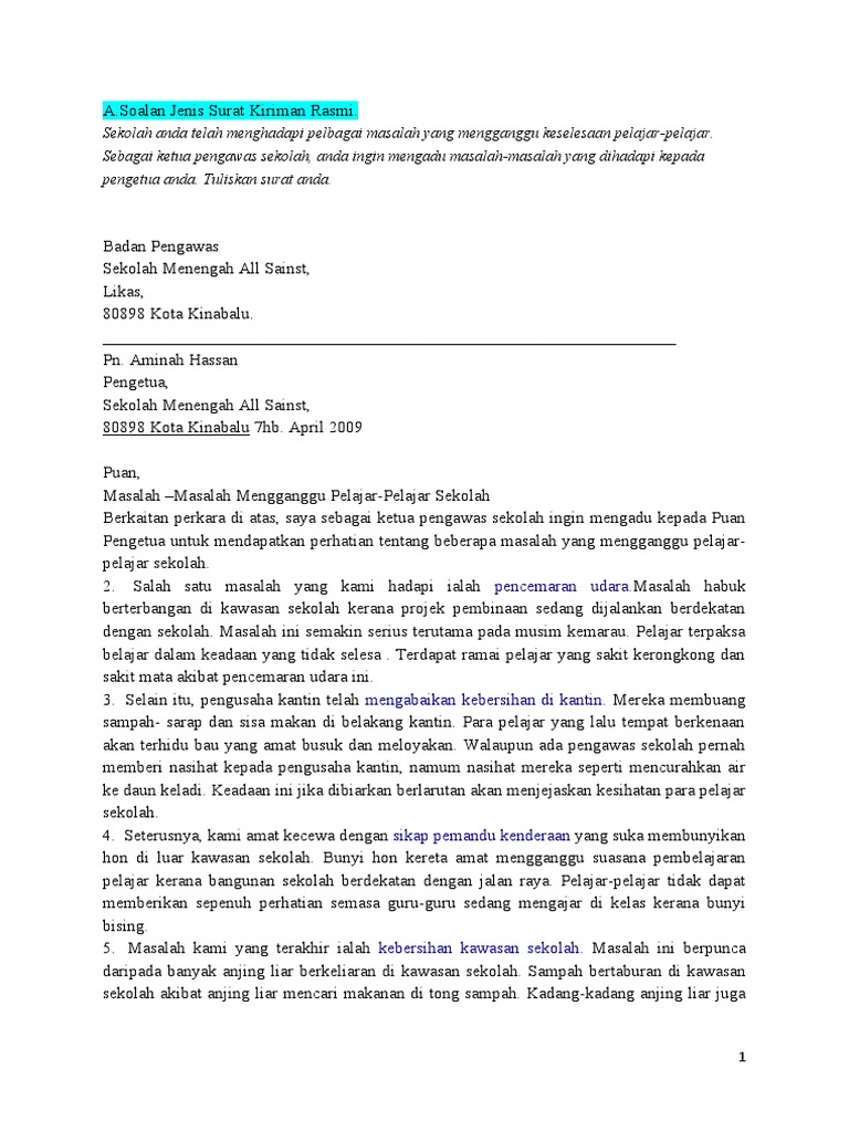 Ia bukan saja penting pada peperikasaan upsr, pt3, spm atau stpm, tetapi juga sering digunakan pada hidupan anda. I learn ace azrol azmi, pusat tuisyen pintar ilmu, jerantut, pahang. Contoh kertas soalan pengajian am penggal 2. Aliman bin haji suip blk 321 04 1559 ang mo kio avenue 1 singapura 560321 4 april 2004. Contoh format surat rasmi 2021 adalah seperti. Contoh surat izin pmr via www.neodv8.co. Hopefully you are enjoy and lastly can find the best picture from our collection that posted here and also use for suited needs for personal use. Surat rasmi permohonan pertukaran kerja; Contoh surat kebenaran via www.scribd.com. Really is endless you are enjoy and lastly can find the best picture from our collection that posted here and also use for suited needs for personal use. For more information and source, see on this link : Contoh surat 2020 01 contoh surat rasmi aduan. Salam pembuka surat resmi dalam bahasa inggris.