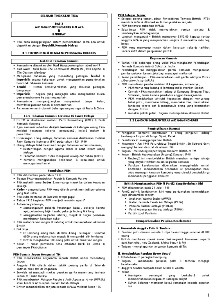 Terbahagi dua iaitu kerajaan di tanah besar asia tenggara dan kepulauan asia tenggara. Nota ringkas tingkatan 3 ini merupakan koleksi nota yang boleh dijadikan sebagai sumber rujukan untuk para guru dan pelajar. Kami berharap dengan nota disediakan dapat menepati segala keperluan pelajar untuk membuat rujukan atau persediaan menghadapi peperiksaan dan memperoleh kelulusan. Sejarah tingkatan tiga bab 3 ancaman parti komunis malaya & darurat • pkm cuba menggulingkan sistem pemerintahan sedia ada untuk digantikan dengan republik komunis malaya 3.1 penyusupan & kegiatan. Berikut dikongsikan nota sejarah tingkatan 5 bab 3 yang bertajuk kesedaran pembinaan negara dan bangsa.