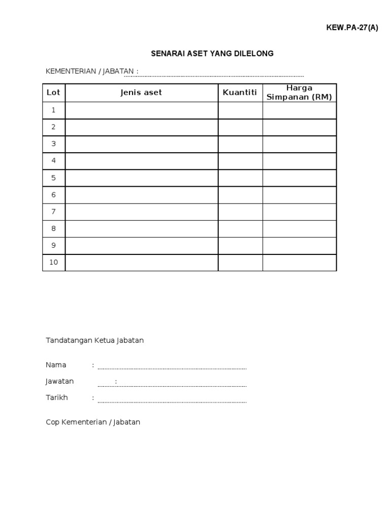 KEW.PA 5 from imgv2-2-f.scribdassets.com 0 ratings0% found this document useful (0 votes). Bagi cukai pendapatan 2019, lhdn telah mengeluarkan senarai yang membolehkan individu yang membayar cukai pendapatan tahunan layak menerima pelepasan cukai ini adalah melibatkan tabungan bersih pada tahun 2019 iaitu jumlah simpanan yang ditolak dengan jumlah pengeluaran. Beberapa masjid terkenal di malaysia bukan sahaja menerima kunjungan dari pelancong dalam negara, tetapi juga menarik minat pelancong dari luar negara. Pa ( pengurusan aset alih kerajaan ) bil. Malaysia mempunyai banyak masjid yang reka bentuknya unik, menarik dan lain daripada yang lain. Kemudian baru masuk pada anggaran kewangan. Senarai jenis jenis borang kew pa aset docx document. A contoh borang stok kew pa 7.